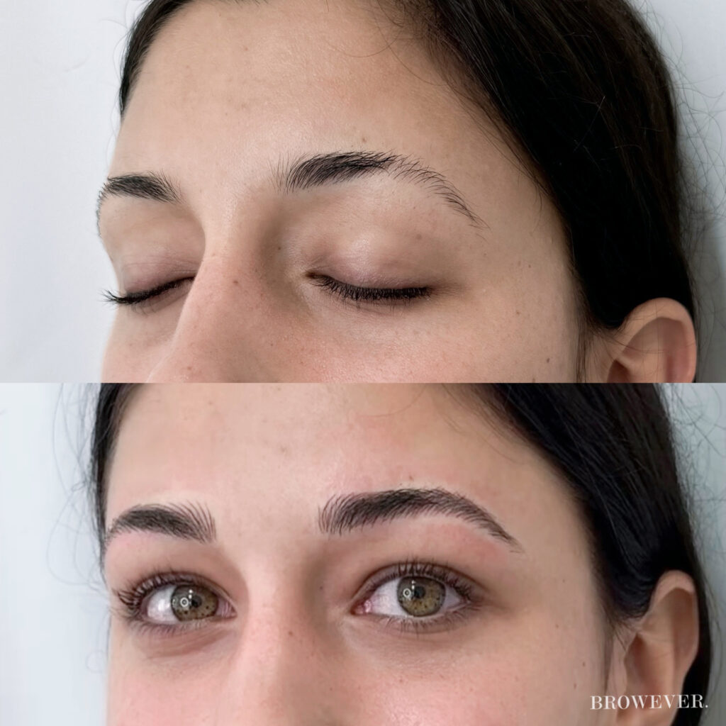 It is a beauty service for your brows. A tool makes small lines that copy real hairs. The result is full brows that last a long time.